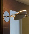 By installing the supplied reflector the lamp produces direct/indirect directional light. Painted metal frame. Adjustable satin glass diffuser and reflector made of anodized aluminium. Wall support made of painted polymer.