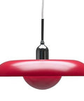 Pendant version (Ø 400 mm): Piet Hein also produces a RA 400 pendant in red metal finish. It features two layered metal shades that distribute light without glare, a long textile white cord (≈3 m), and an E27 max 75 W socket